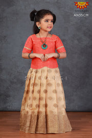 Girls Golden Copper Yentra Pattu Pavadai | Langa