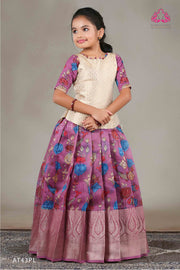 Girls Lavender Kalamkari Fish Pattu Pavadai !!!