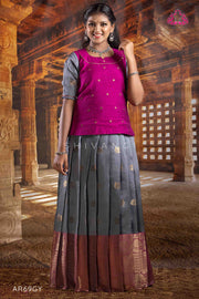 Girls Grey Floral Link Pattu Pavadai | Langa