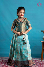 Girls Sky Blue Copper Yentra Pattu Pavadai | Langa