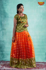 Girls Ramar Green Copper Peacock Pattu Pavadai