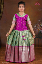 Girls Pink Lilly JKD Green Pattu Pavadai in Elbow Sleeve !!!