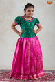 Pink Golden Shell Pattu Pavadai For Girls