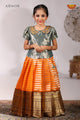 Orange Golden Pillar Pattu Pavadai Diwali Collection for Girls