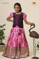 Satin Rose Bunch Pattu Pavadai For Girls Pink - Festive Wear!!!